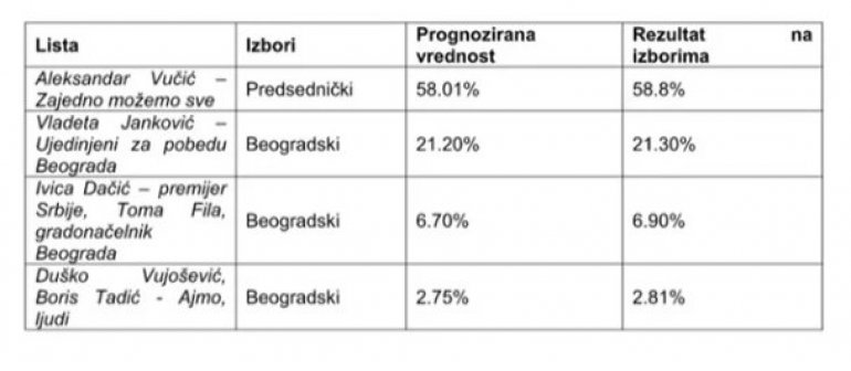 Osim izlaznosti, uspešno su prognozirali izborne rezultate najrelevantnijeg dela političkih snaga: