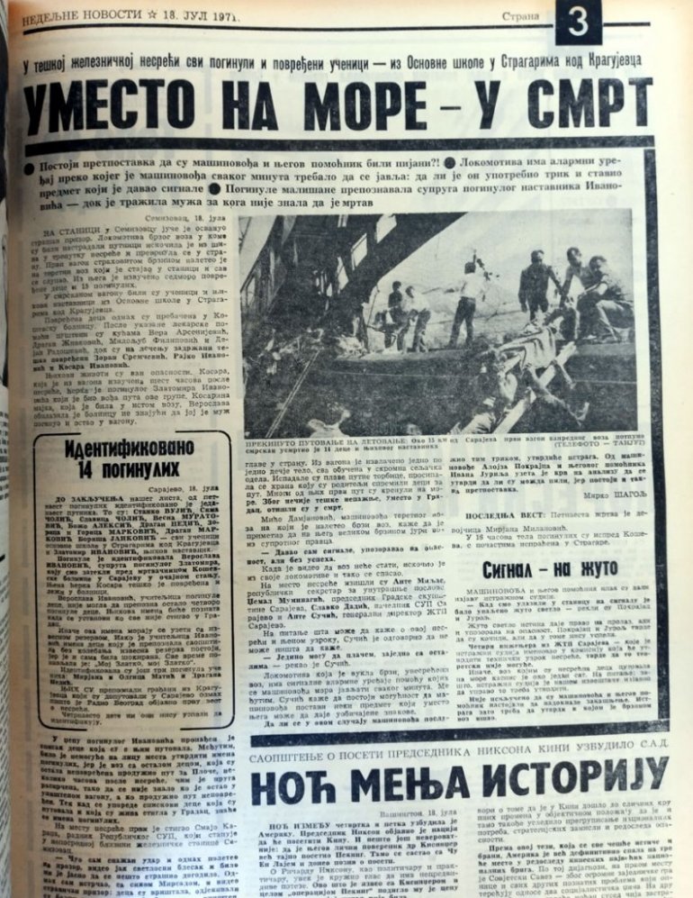 ŠUMADIJA je tog 17. jula 1971. godine bila ogromna suza. Dan sa crnim florom. I zastavama na pola koplja. Opraštala se od četrnaestoro svoje dece.