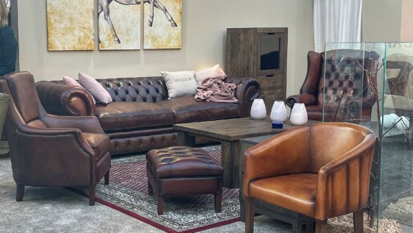 - Proizvodimo nameštaj za engleske lordove. Na ovakvom trosedu, recimo, odmara se šef Džejmsa Bonda - ovako opisuje svoju ponudu vlasnik fabrike iz Požege, pokazujući trosed presvučen kožom bika i ručno farban pošto je sklopljen. - Cena mu je 6.700 evra. Fotelje su oko 2.800, tabure 800, a stočić 1.000 evra. Nameštaj, gotovo sav, izvozimo u Veliku Britaniju.