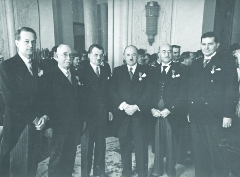 Dodela Legije časti profesoru Kostiću, u sredini, 1940. godine u francuskoj ambasadi/Foto: Dokumentacija Legata dr Aleksandra Kostića; Arhiv „Novosti“; Vikipedija; Arhiv instituta za histologiju i embrologiju; Digitalna arhiva CIBID Medicinskog fakulteta i Arhiv AVA SANU