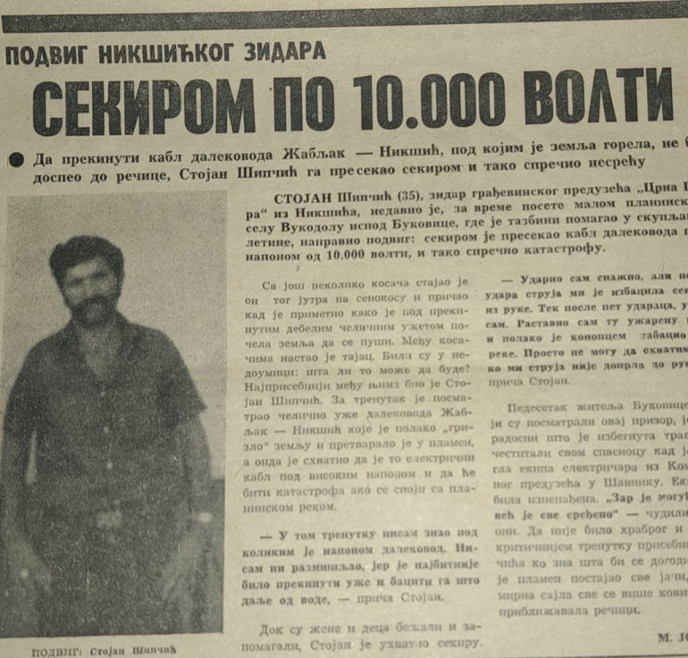 OD POŽARA SPASAO 20 KUĆA: Stojan Šipčić, iz Nikšića, 21. jula 1977, sekirom presekao kabl dalekovoda pod naponom od 10.000 volti (FOTO)