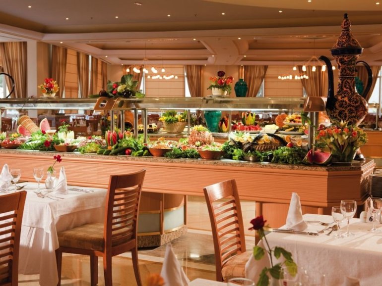 Usluga u hotelu Steigenberger Marhaba Thalasso 5* je All Inclusive, pa glavni restoran funkcioniše na nivou samoposluživanja, sa velikim izborom sveže pripremljene hrane lokalnih i internacionalnih ukusa. Pored njega, postoje i 3 a la carte restorana raskošne kuhinje i prijatne atmosfere idealne za posebne prilike. Tokom dana su gostima na raspolaganju i razne užine, poslastice, i vegetarijanski meni.
