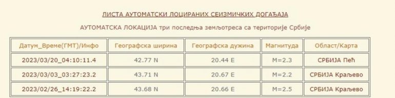 FOTO: Printskrin/Seizmološki zavod Srbije