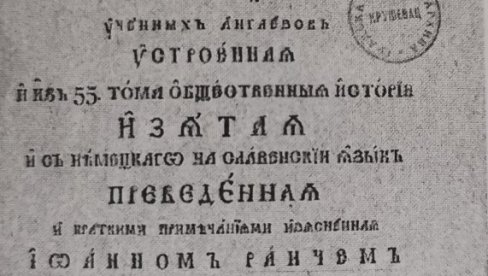 KRUŠEVAC-PRE tačno 230 godina u Beču je štampana „Kratka istorija Kraljevstva Srbije, Raške, Bosne i Rame“, a jedan od retkih primeraka ovog izdanja čuva se u Kruševcu.
