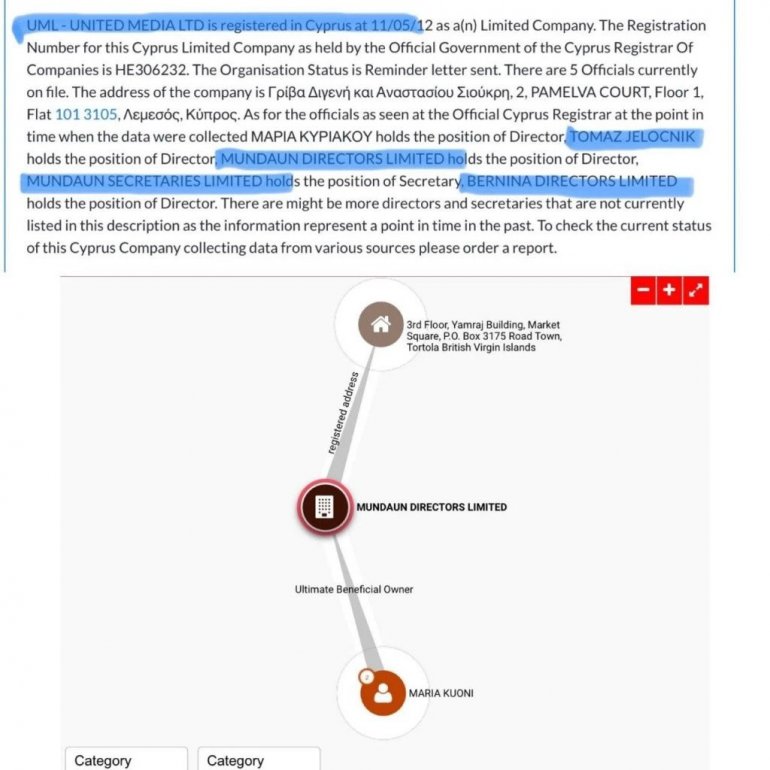 Konkretan primer, na osnovu “Malta dosijea” i “Paradajs papira”: na Malti je 2011. osnovana firma “Prestige Media Limited” sa više vlasnika među kojima je “Salvado” sa Sejšela, dok je korporativni upravljač firma “Aspermont” Marije Kuoni. A ovlašćeni predstavnici tih vlasnika bili su Dragan Šolak i Viktorija Boklag, sadašnja direktorka Junajted grupe i tadašnja direktorka SBB!