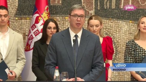 PREDSEDNIK Republike Srbije Aleksandar Vučić prisustvovao je ceremoniji uručenja ugovora o zaposlenju najuspešnijim diplomcima svih medicinskih fakulteta i srednjih medicinskih škola u Srbiji.