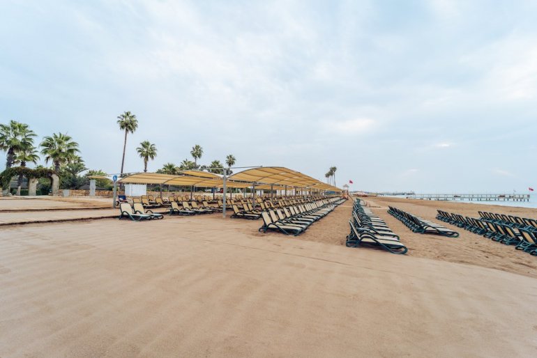 IC Hotels Santai Family Resort 5* ima svoju peščanu plažu, dugu 300 metara, koja je okružena predivnom borovom šumom i na kojoj mogu koristiti peškire, ležaljke i suncobrane besplatno. Na plaži postoji dosta opcija za aktivan odmor, poput terena za odbojku na pesku, ali i vožnja kanua, surf i slični sportovi na vodi, za koje je moguće rezervisati plaćeni termin.