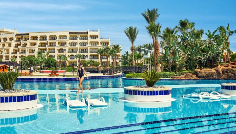 Najveći deo od 388 moderno opremljenih smeštajnih jedinica, ima taj spektakularan, miliona vredan, pogled na more. Sobe su izuzetno prostrane, kako one standardne, idealne za parove, tako i one namenjene porodicama. Sunce koje u Hurgadi nikada ne koristi godišnji odmor, toplo more, i podjednako topli domaćini, učiniće da vaš odmor bude nezaboravan, a želja da ga ponovite i svake sledeće godine velika. Hotel nudi jednako mnogo sadržaja kako na otvorenom, tako i u zatvorenom prostoru. Izbor je vaš! Vrt hotela poseduje bazen površine 5.000m2, gde se u bilo koje doba dana možete osvežiti i uživati u blagodetima sjajne egipatske klime. Za decu postoji prilagođen bazen koji se greje zimi, i dečiji mini klub, za one najmlađe od 4 godine, pa i za malo starije, sve do 12 godina.
