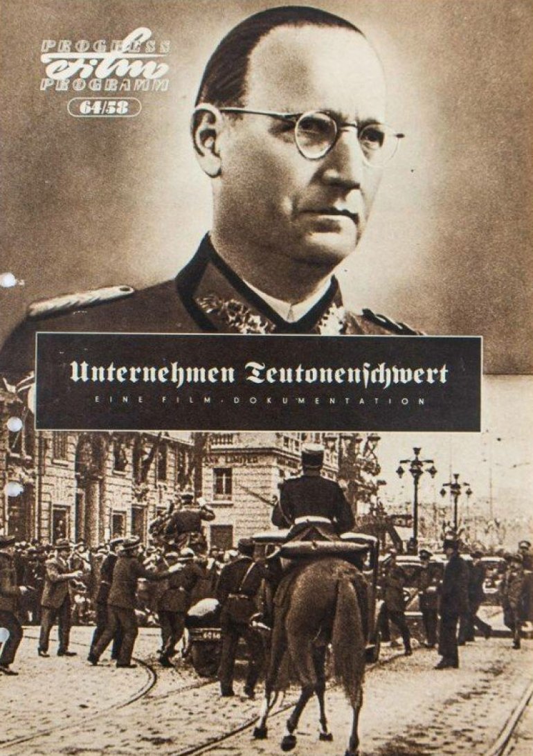 Film "Operacija Tevtonski mač", u trajanju od 49 minuta, pojavio se u bioskopskim salama sredinom 1958. godine. Eho je bio mnogo veći od spomenute konferencije za novinare i knjige. Za godinu dana videlo ga je više od osam miliona gledalaca. Gledan je i u Beču, Londonu, pa čak i u Kanberi. Ambasade Zapadne Nemačke u svim ovim zekljama su ulagali zvanične proteste ali bez većih efekta. Prikazan je na kraju i u Zapadnoj Nemačkoj u skraćenoj i cenzuriosanoj verziji.