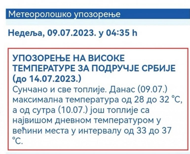 NAJNOVIJE UPOZORENJE RHMZ: Do polovine jula temperature u Srbiji biće skoro 40 stepeni