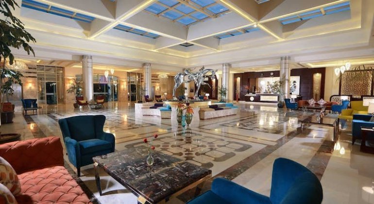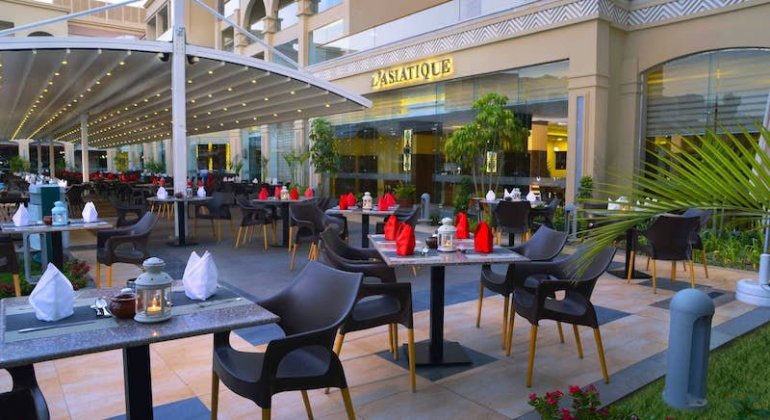 Usluga u hotelu je All Inclusive – što podrazumeva rani doručak, doručak, kasni doručak, ručak i večeru (po principu samoposluživanja – izbor više jela po hotelskim pravilima). U ponudi hotela su i a la carte restorani - Soprano, L’ Asiatique, Saffron i Wow, kao i brojni barovi - Lobby Bar, Sport Bar, White Bar, Millenium Bar, Olympus Bar, Red Sky Bar i Beach Bar. U koncept su uključeni sladoled, razne ukusne užine, kao i lokalna bezalkoholna i alkoholna pića.