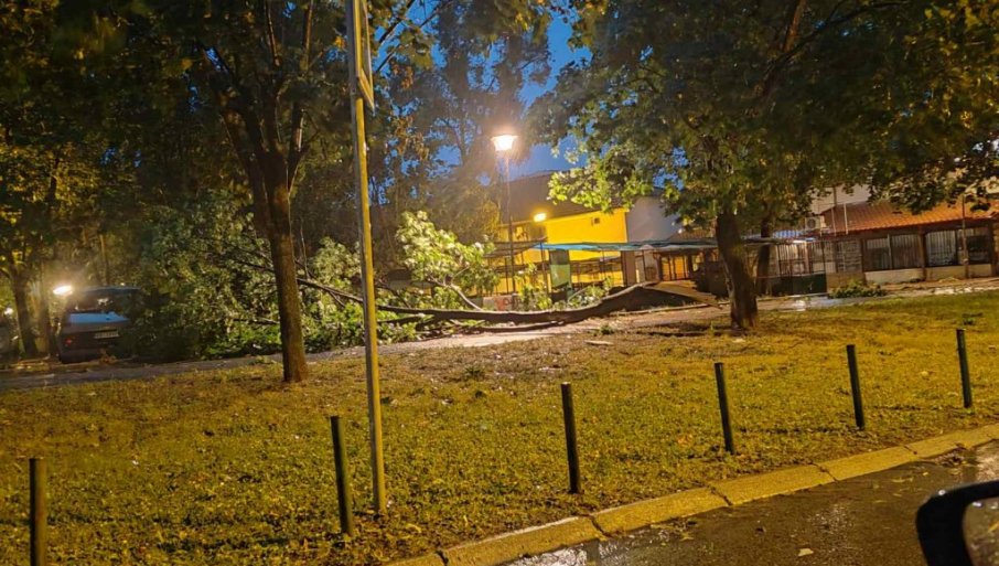 Usled jakog nevremena i udara vetra, iščupano je stablo pored parking mesta na Novom Beogradu. Evo kako je to završilo: