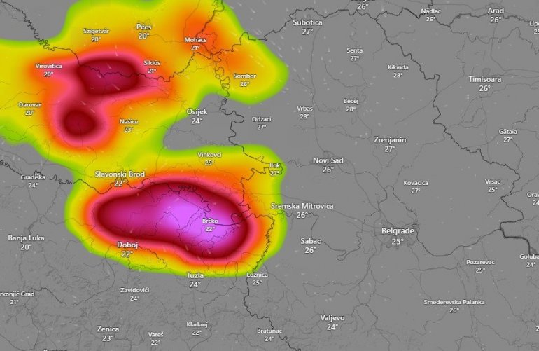 - Tokom večeri se novo grmljavinsko nevreme sa područja Slavonije, Bosne i Hercegovine i dolinom Save, u pretežno zapadnoj struji premešta ka zapadu Srbije pa se nakon 20 časova prvo u Bačkoj, Sremu i zapadnoj Srbiji očekuju intenzivni pljuskovi sa jakom grmljavinom, gradom i kratkotrajno olujnim vetrom sa udarima i oko 100 km/h koji može pričiniti značajnu materijalnu štetu, ugrožavajući bezbednost ljudi, životinja i imovine. Dalja tendencija premeštanja biće preko područja Beograda, Šumadije i Banata dalje na istok - ističu iz RHMZ.