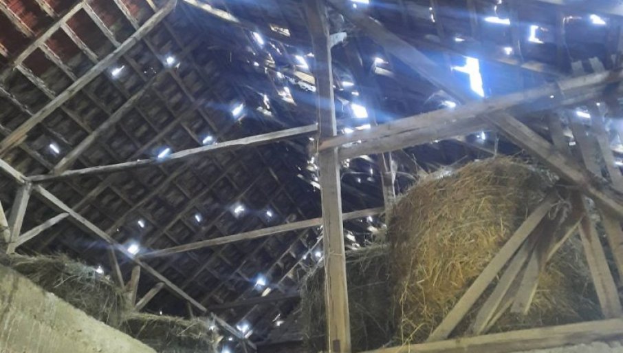 Grad je probušio i krovove na porodičnoj kući i ekonomskim objektima. Štala izgleda kao da je neko na nju ispalio na stotine rafala. Stradale su i ptice.