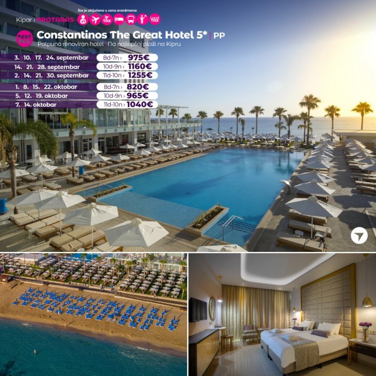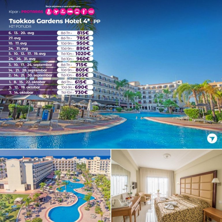 Definitivno nova omiljena letnja destinacija naših turista, svakako jeste rajsko ostrvo Kipar. Osetite čari Mediterana, fantastičnih plaža, veoma kvalitetnih hotela, izuzetne gastronomske ponude, kao i nezaboravnog noćnog provoda. Za naše putnike smo spremili odličnu first minute ponudu sa pažljivo izabranim hotelima, kako na osnovu pređašnjih iskustava naših klijenata, tako i na osnovu odličnih ocena na turističkim portalima.