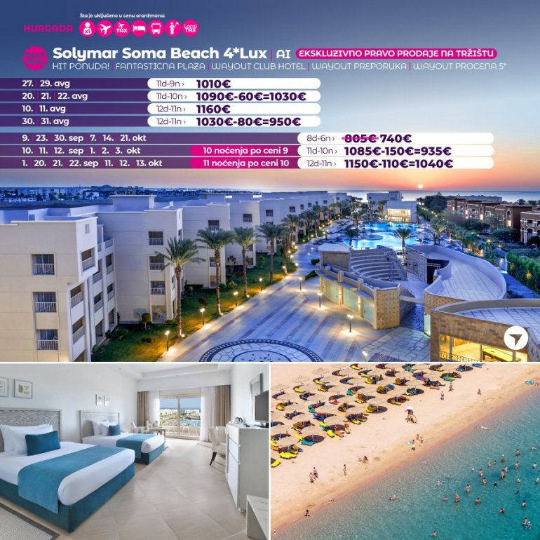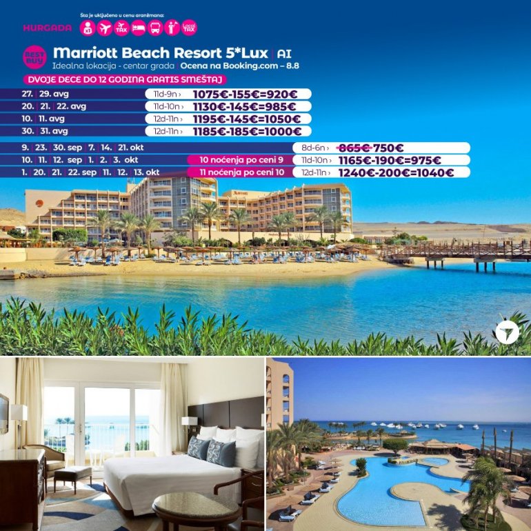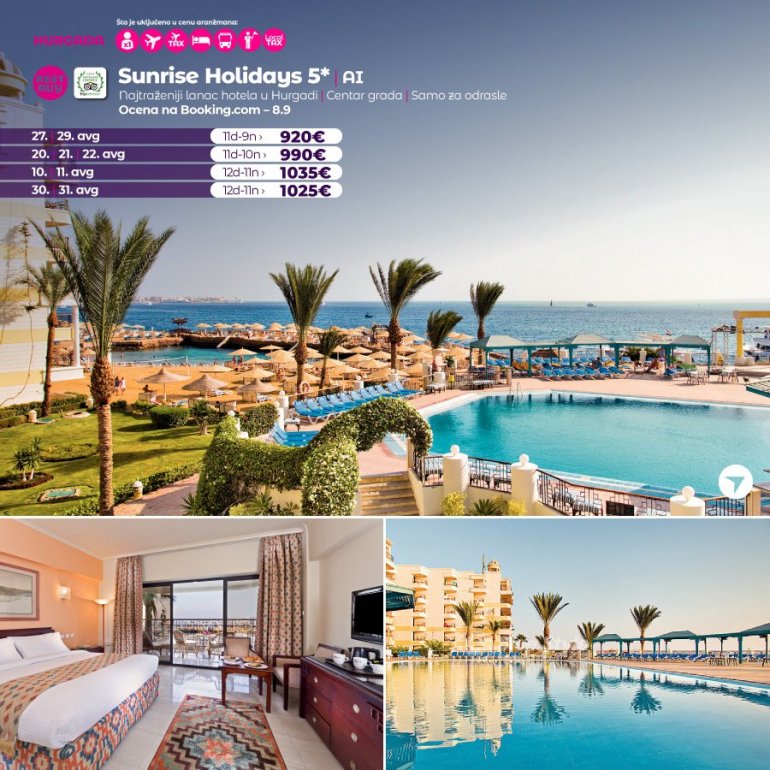 HURGADA je definitivno postala omiljena destinacija naših putnika poslednjih godina, najviše zbog fantastične all inclusive usluge, sjajne animacije, kao i porodičnog koncepta koji nudi najviše po veoma pristupačnim cenama za razliku od drugih destinacija.