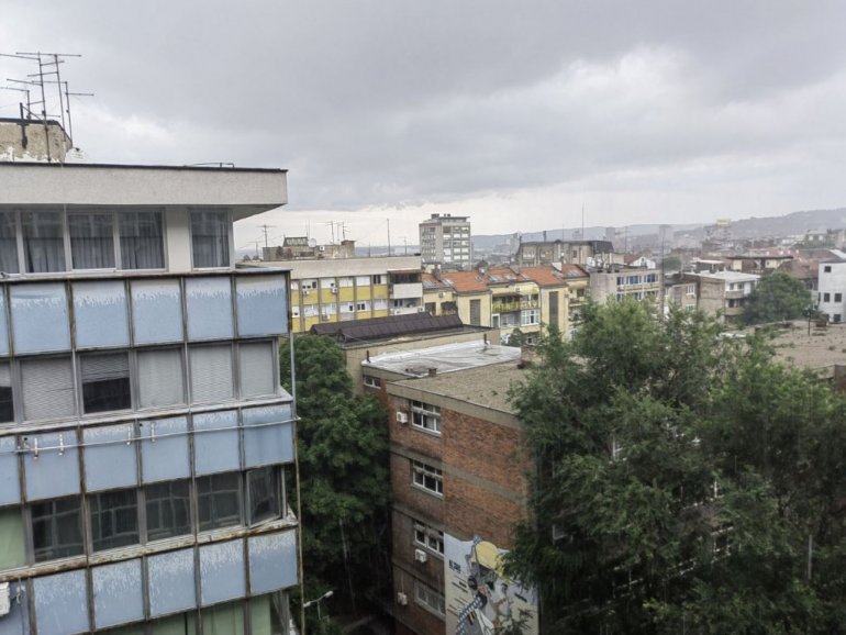 Dok je polovina grada pod crnim oblacima sa kišom, nad drugom polovinom se razvedrava, uz sunčane intervale.