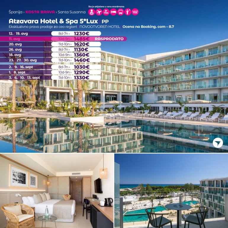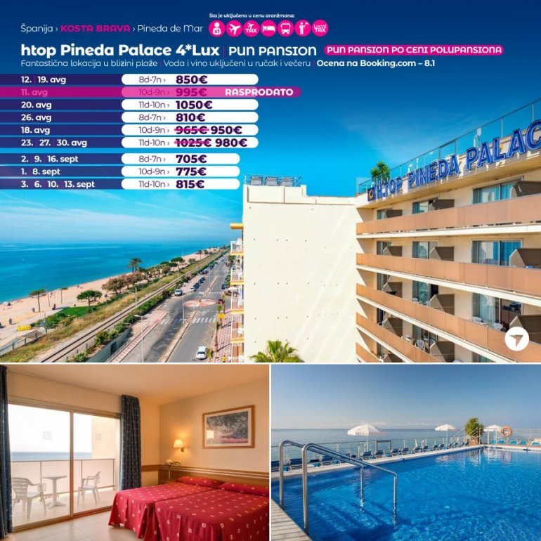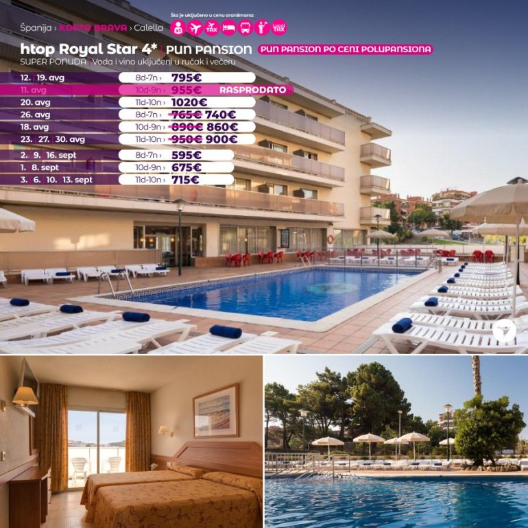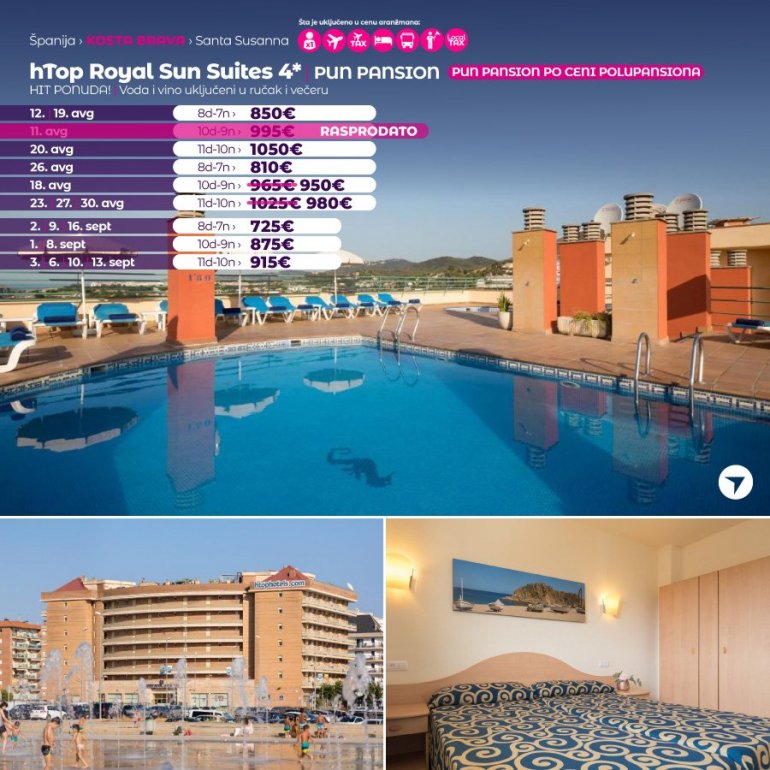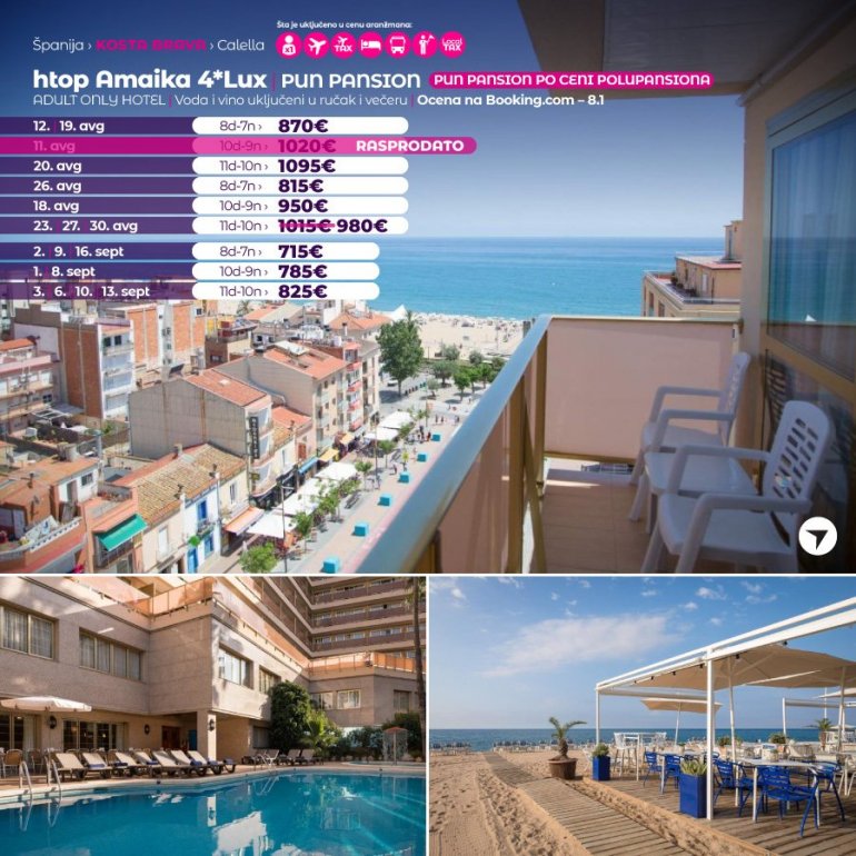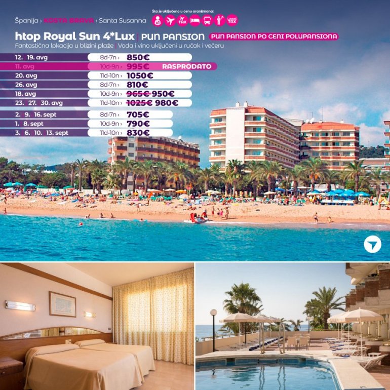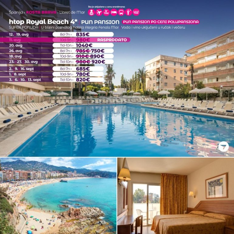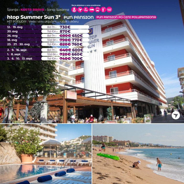 U pitanju je poznati hotelski lanac HTop Hotels, a u Wayoutu možete pronaći pomenutu ponudu uz ekskluzivne cene za letnju sezonu počevši od junskih polazaka kada je i pravo vreme da uz posetu Kosta Bravi. Posetite i jedan od najlepših gradova Starog kontinenta, Barselonu, koja se nalazi na oko sat vremena udaljenosti od obale Kosta Brave. Takođe, neki od izleta koje ne bi trebalo propustiti su svakako obilazak grada Đirone ili odlaska do fantastične Tose Del Mar.