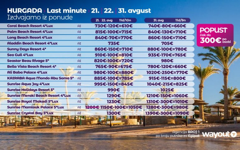 Na kraju, napominjemo da sve aktuelnosti vezane za aranžmane agencije Wayout možete ispratiti i putem naše Facebook i Instagram stranice, a tamo vas čeka i mnoštvo zanimljivog sadržaja.