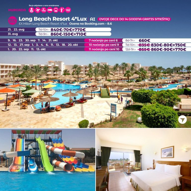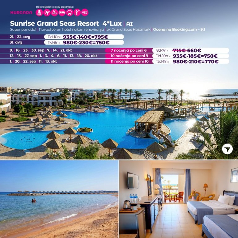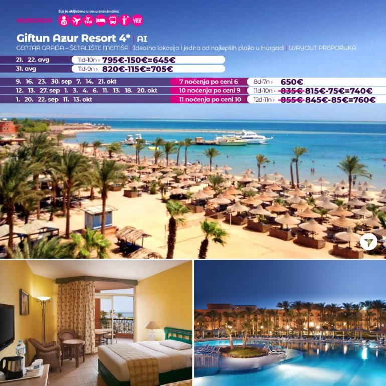 HURGADA je definitivno postala omiljena destinacija naših putnika poslednjih godina, najviše zbog fantastične all inclusive usluge, sjajne animacije, kao i porodičnog koncepta koji nudi najviše po veoma pristupačnim cenama za razliku od drugih destinacija.