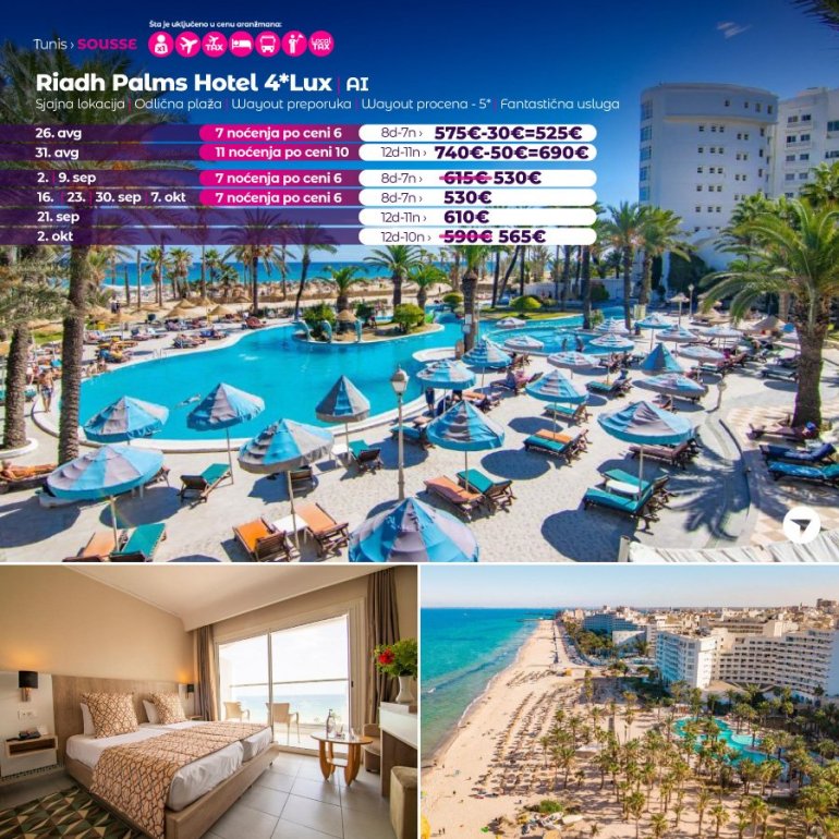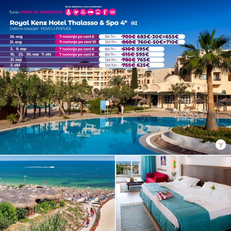 Isključivo sa AirSerbia u Tunis! 7 noćenja po ceni 6 noćenja / 10 noćenja po ceni 9 noćenja / 11 noćenja po ceni 10 noćenja. Izdvajamo iz ponude najtraženije hotele za leto 2023: