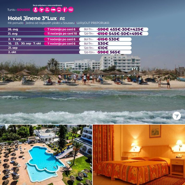 I dalje razmišljate gde ćete na letovanje? Ne propustite sjanju priliku i rezervišite svoje letovanje u Tunisu za samo 199 eur, a ostatak platite 20 dana pred put!