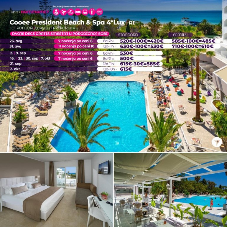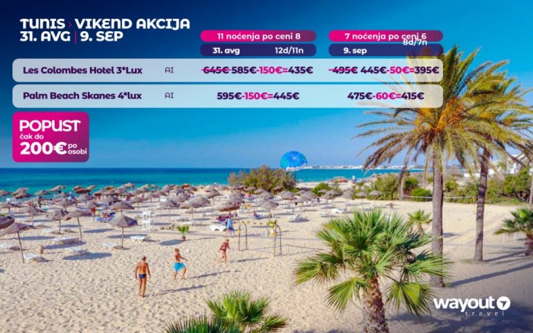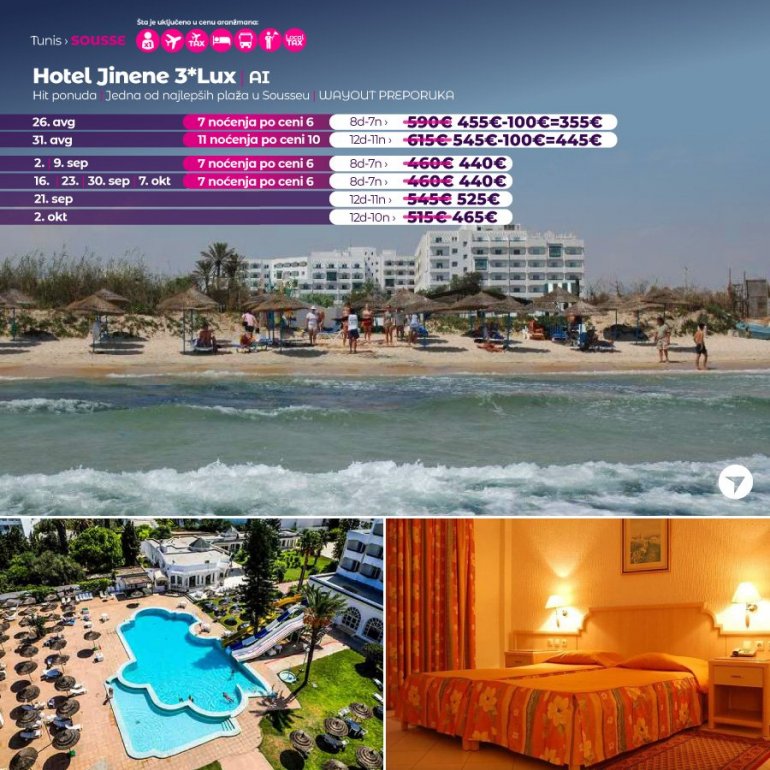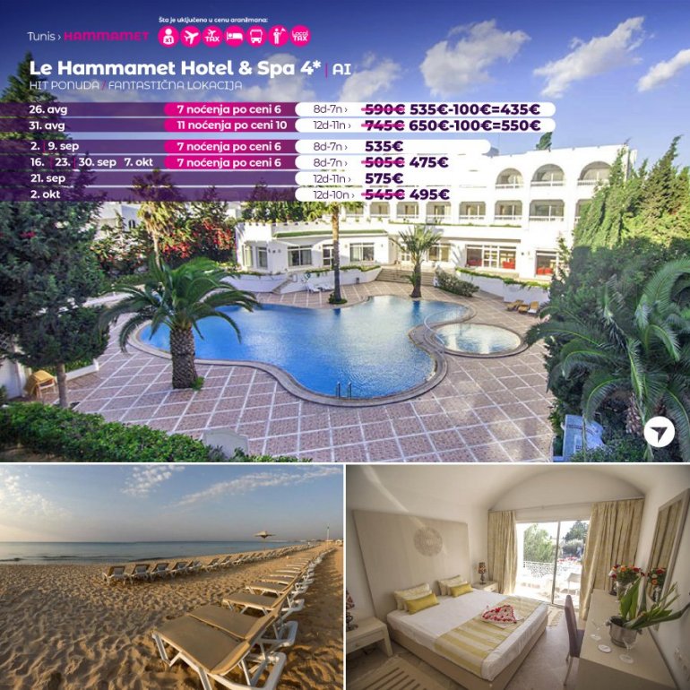 I dalje razmišljate gde ćete na letovanje? Ne propustite sjanju priliku i rezervišite svoje letovanje u Tunisu za samo 199 eur, a ostatak platite 20 dana pred put!