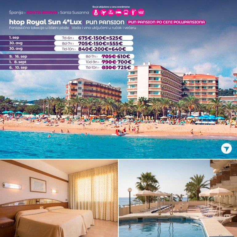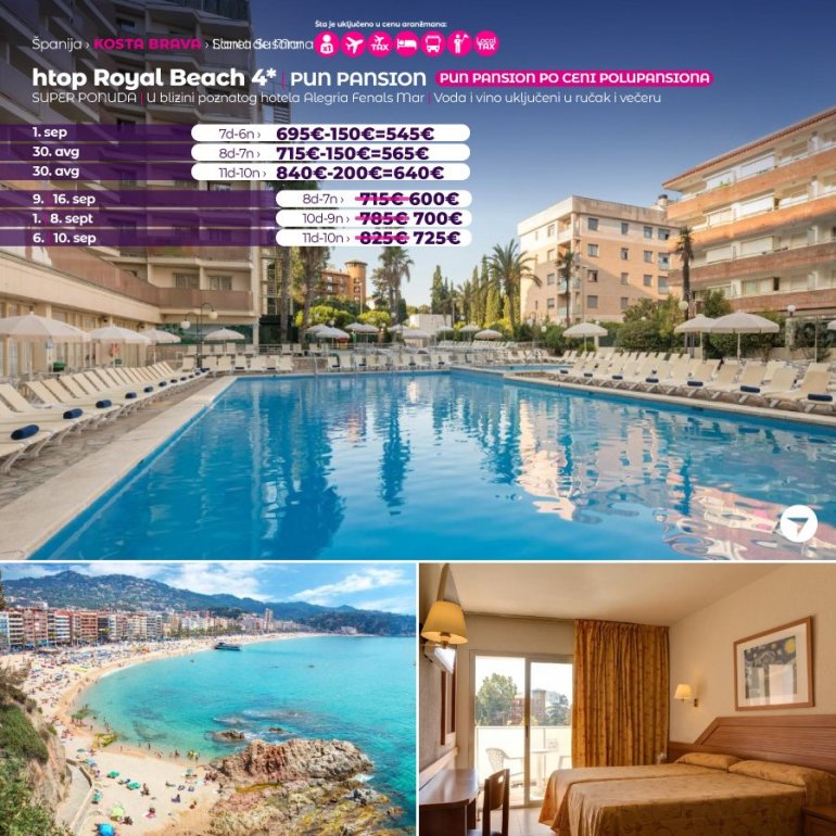 Kosta Brava je definitivno mesto u Španiji koje valja posetiti, posebno zbog neodoljive ultra last minute ponude ili letnje rasprodaje pojedinih hotela koji nude uslugu punog pansiona po ceni polupansiona. Wayout agencija je za svoje putnike pripremila neodoljivu ponudu za pomenutu oblast koja se nalazi nadomak Barselone, a kao posebna pogodnost se izdvajaju hoteli koji nude uslugu punog pansiona po ceni polupansiona. U pitanju je poznati hotelski lanac HTop Hotels, a u Wayout možete pronaći pomenutu ponudu uz ekskluzivne cene za letnju sezonu počevši od junskih polazaka kada je i pravo vreme da uz posetu Kosta Bravi.
