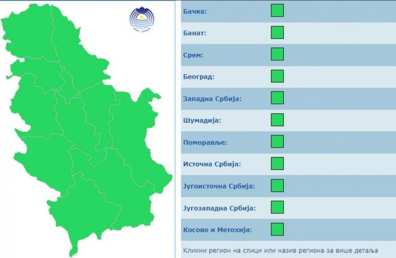 Naime, prema prognozi Republičkog hidrometeorološkog zavoda za petak, prvi dan nove školske godine, cela Srbija će biti u "zelenom", što znači da na teritoriji čitave zemlje neće biti područja na kojem se očekuje opasno vreme.