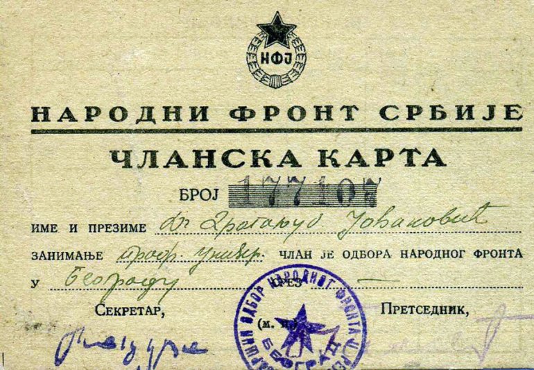 Članska karta Narodonog fronta, Foto Arhiva porodice Jovanović, Arhiv SANU, Muzej Srbije, Dokumentacija „Novosti“ i Vikipedija