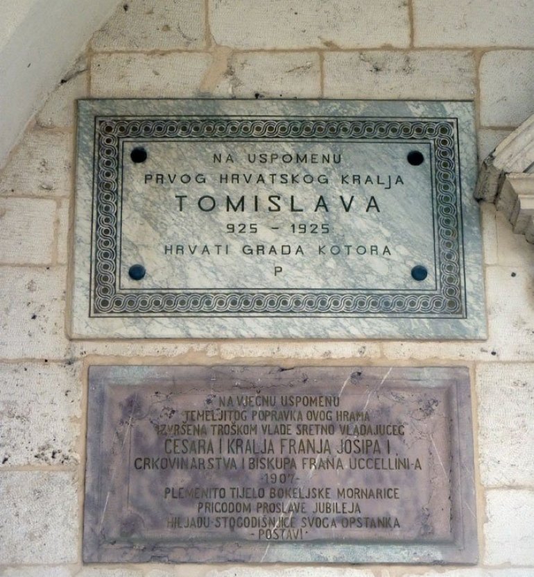 Ploča na pročelju crkve sv. Tripuna kroatiziranog, mitološkog slavenskog kralja Tomislava, Foto Arhiv Kotor, Arhiv Hereceg Novi, Turistički savez Herceg Novog, Tivta i Budve, Muzeji Kotora i Herceg Novog, Profimedija , Portal Atlantik , Dokumentacija „Novosti“ i „Borbe“, Vikipedija i Fejsbuk...