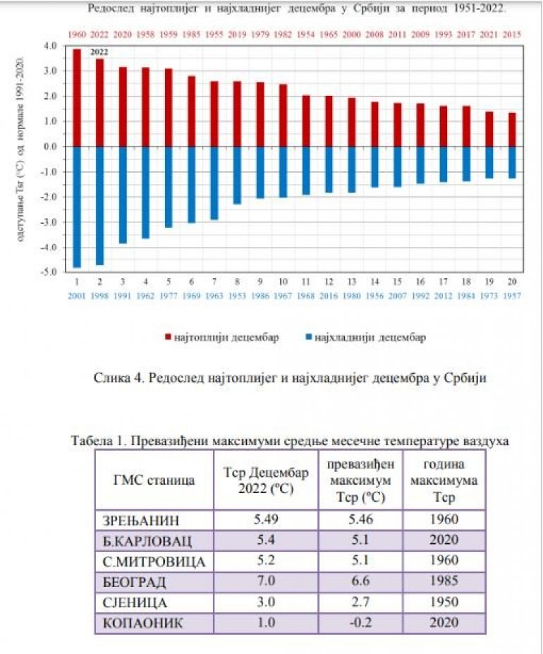 U prilogu je spisak meteoroloških stanica na kojima je decembar 2022. godine bio najtopliji od početka merenja.