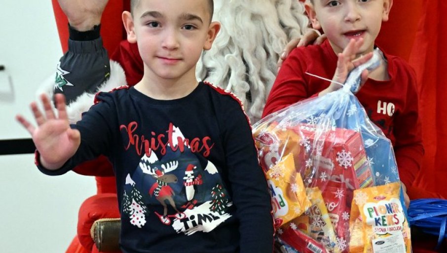 GDE SI PARKIRAO SANKE I IRVASE? Popularni Deda Mraz na druženju sa mališanima zaposlenih u "Novostima", u "MTS dvorani" (FOTO)