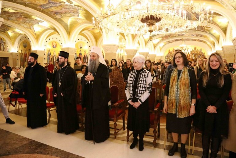 – Radujemo se svi što smo ovde u hramu posvećenom Svetom Savi, koji je naš zastpunik pred Bogom. On se moli za nas i pomaže nam da budemo svakog dana sve bolji i bolji, da budemo dobri prema svojim mamama i tatama, prema braći i sestrama, rođacima i komšijama, da budemo dobri prema svima. I Sveti Sava se, kao i mi, uvek raduje najvećem, najlepšem i najuzvišenijem događaju, a to je Rođenje Hristovo. Najveći dar koji mi kao ljudi, kao deca i kao odrasli, imamo jeste Rođenje našeg Gospoda Isusa Hrista, ali najveći naš dar Bogu Isusu Hristu jeste da budemo dobri, da se trudimo da budemo dobri, da imamo razumevanje između sebe. Vi, deca, za nas ste, upravo zbog toga što je i Isus Hristos među nas došao kao dete, najveći dar - kazao je on ovom prilikom.