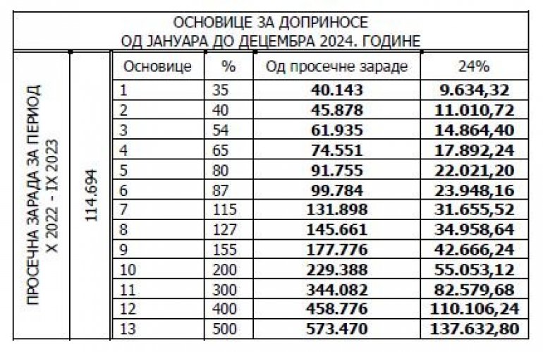 Od uplate za januar 2024. godine važe nove osnovice osiguranja, koje su za 14,6% više u odnosu na prethodnu godinu i građani mogu da se opredele za jednu od 13 osnovica osiguranja, nezavisno od stručne spreme koju imaju, saopštio je Fond PIO.