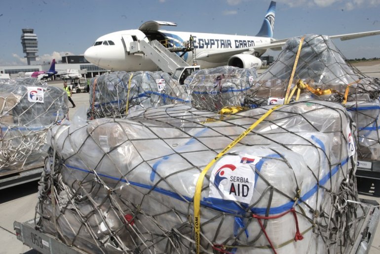 ОСТАТАК ЋЕ БИТИ ТРАНСПОРТОВАН И БРОДОМ: Други авион са помоћи из Србије за Газу чека полетање за Египат (ФОТО)