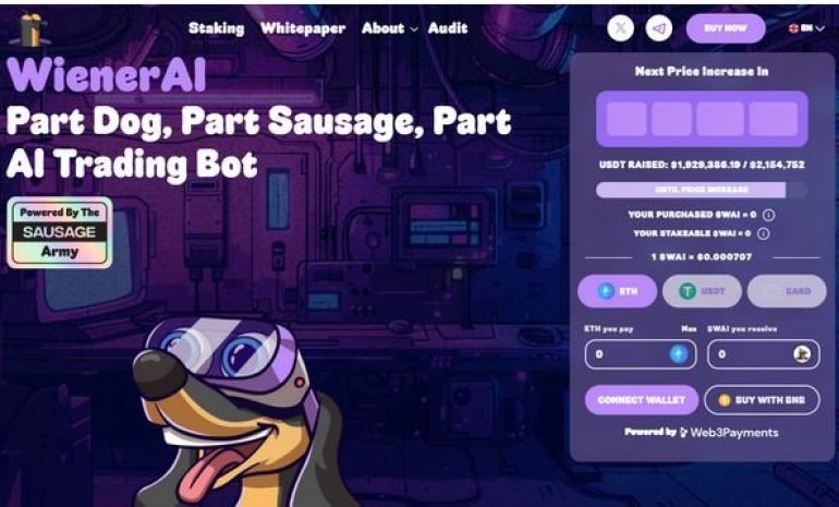 WienerAI – Popularni AI meme token sa potencijalom za 1000x rast. Prikupio je skoro $600k za nedelju dana.