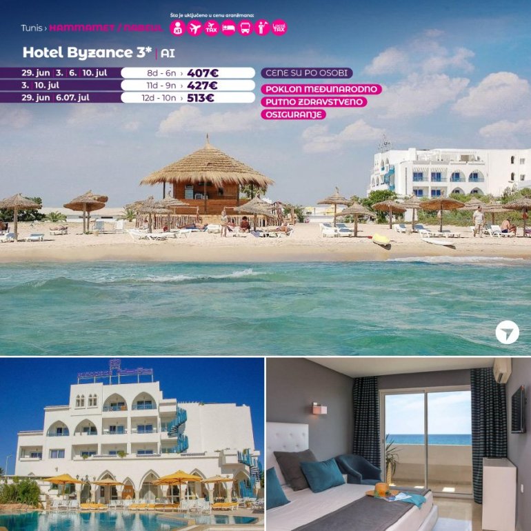 Hotel vas dočekuje u Nabeulu, glavnom gradu poluostrva Cap Bon. Ranije su ga zvali Neapolis, to je grad koji živi u ritmu talasa i sunca.