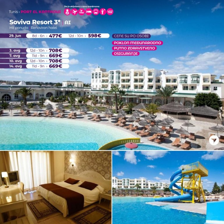 Hotel Soviva nalazi se između Port El Kantaoui-a i Soussa u Tunisu. Nalazi se na 24km od međunarodnog aerodroma u Monastiru.