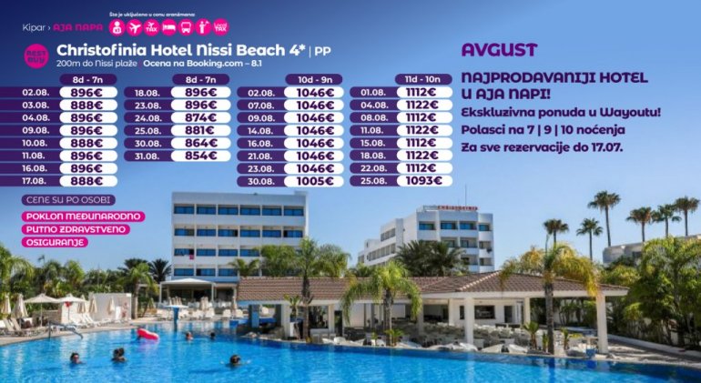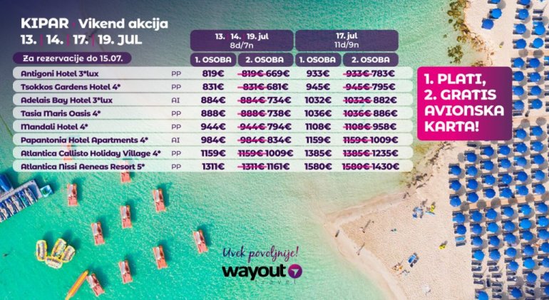 Definitivno nova omiljena letnja destinacija naših turista, svakako jeste rajsko ostrvo Kipar. Osetite čari Mediterana, fantastičnih plaža, veoma kvalitetnih hotela, izuzetne gastronomske ponude, kao i nezaboravnog noćnog provoda.