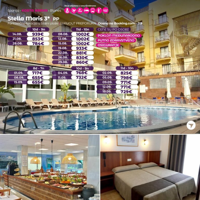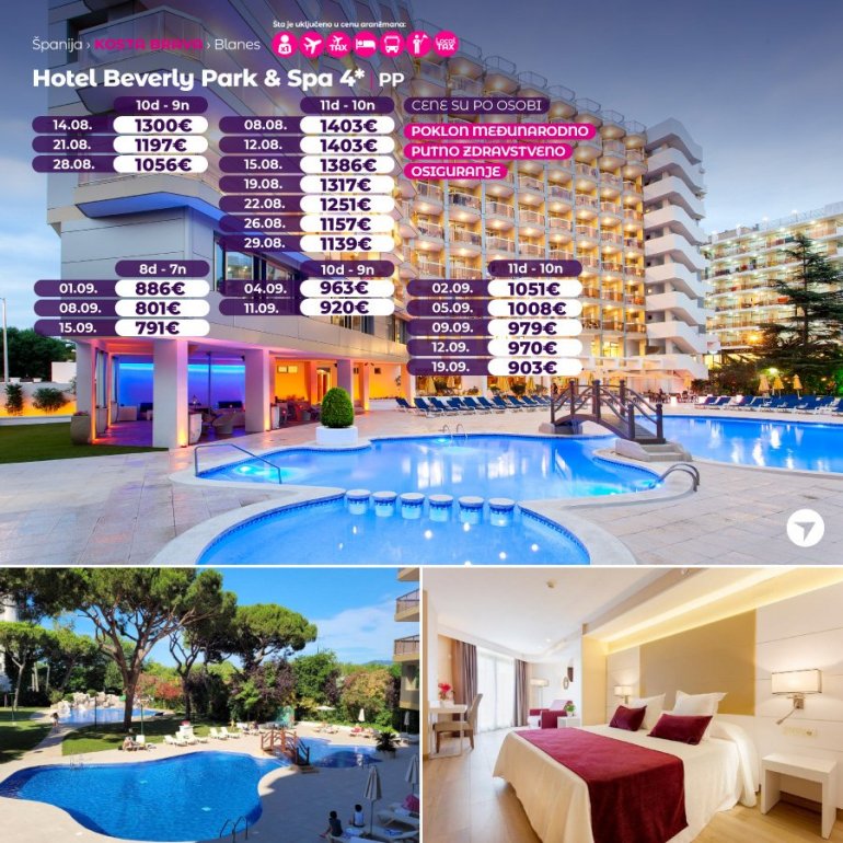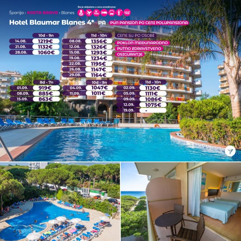 Hotelski objekat je udaljen 3 minuta hoda do plaže, tj. 100 metara od plaže SAbanell u Blanesu. Gostima je na raspolaganju bazen. Sve plaže u regiji Kosta Brava su javne i moguće je iznajmiti suncobrane i ležaljke.