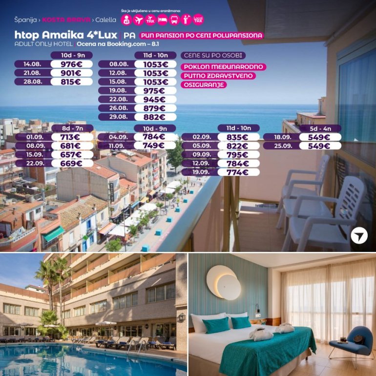 Prvi i jedini hotel sa 4* u gradu Kalelja koji je samo za odrasle (16+). Smešten je na samo 150 m od javne gradske plaže u neposrednoj blizini centra grada i kao takav predstavlja idealno mesto za odmor i obilaske a da ne morate da putujete daleko. Hotel je idealan za parove. Hotelski bazen je dostupan svim gostima sa dovoljnim brojem ležaljki i suncobrana kao i peškira za sunčanje.