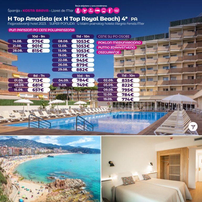 Smešten je na 50 metara od plaže Fenals u Ljoret de Maru i na oko 2 km od gradske plaže ovog grada. Hotel se nalazi u mirnom delu letovališta Ljoret de Mar. Teren za golf PGA Catalunya i Water World Park su na samo 3 km od hotela Amatista. Amatista poseduje otvoreni bazen i krovnu terasu sa hidromasažnom kadom. Pored bazena je terasa za sunčanje i uživanje.
