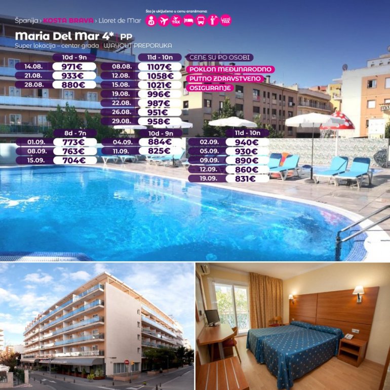 Nalazi se u centru Ljoret de Mara. Udaljen je 700 m od plaže Fenals. Gostima je na raspolaganju hotelski bar, mini klub za najmlađe goste sa animatorom, terasa za sunčanje sa dovoljnim brojem ležaljki i suncobrana. Takođe na bazenu možete iznajmiti i peškire. Otvoreni bazen i bar su gostima dostupni tokom celog dana. SPA centar je takođe gostima na raspolaganju.