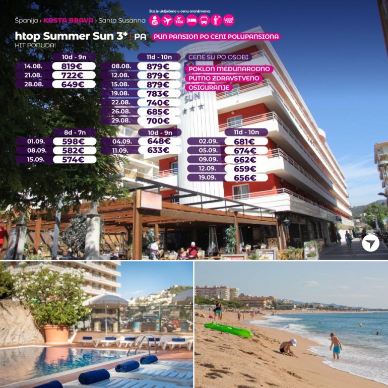 Moderan hotel smesten na svega 100m od javne gradske plaze.Nalazi se u glavnoj ulici Santa Susane.