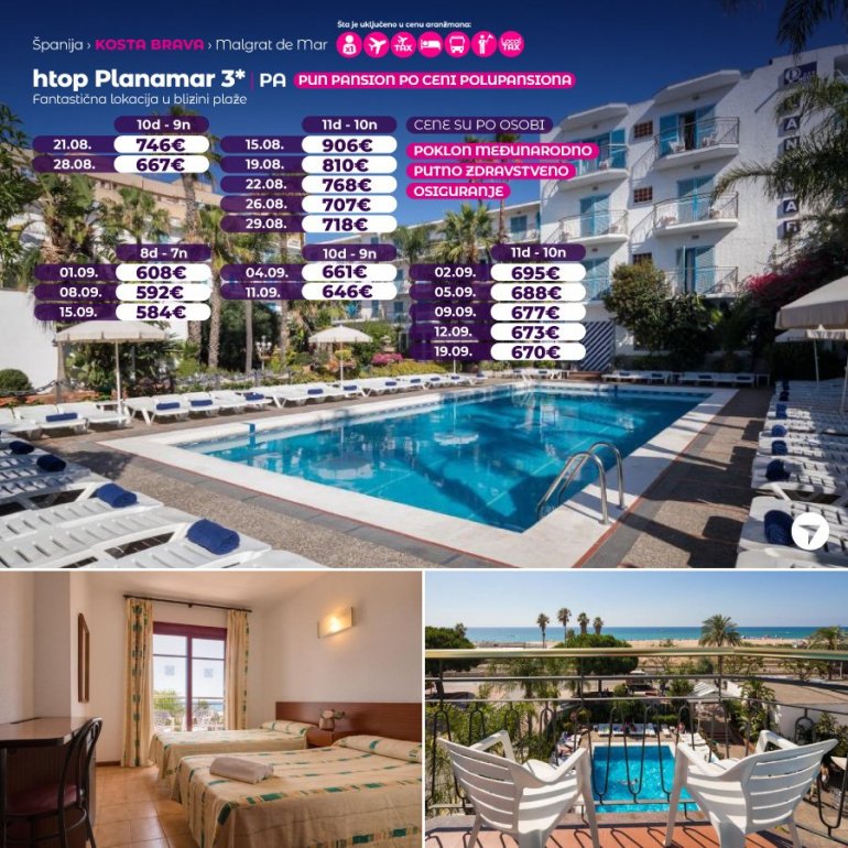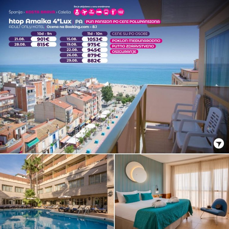 Prvi i jedini hotel sa 4* u gradu Calella koji je samo za odrasle (16+). Smesten je na samo 150m od javne gradske plaze u neposrednoj blizini centra grada i kao takav predstavlja idealno mesto za odmor i obilaske a da ne morate da putujete daleko. Hotel je idealan za parove.