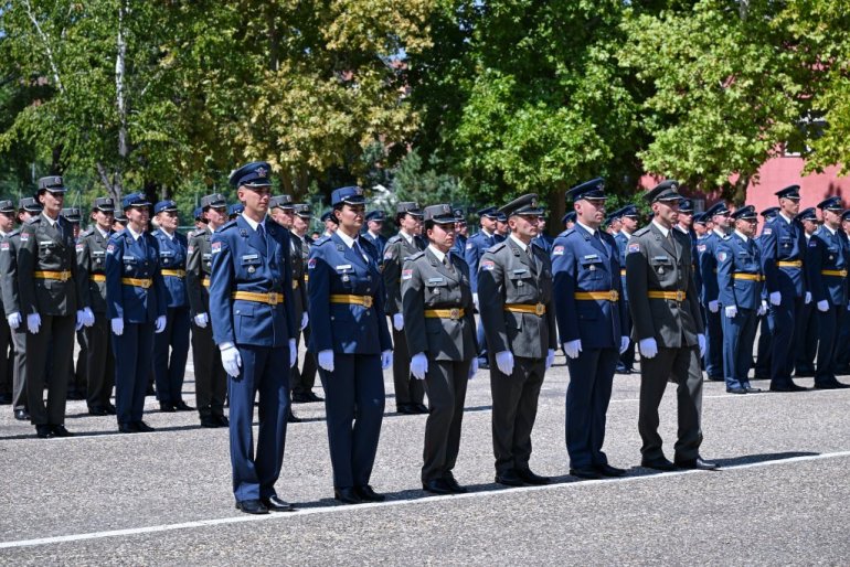 Svečanosti su prisustvovali komandant Komande za obuku general-major Zoran Nasković, koji je bio komandant svečanosti, zamenik komandanta Kopnene vojske general-major Zoran Dragićević, načelnik Operativne uprave Generalštaba general-major Tiosav Janković, načelnik Uprave za razvoj i opremanje Generalštaba brigadni general Milan Popović, komandant 250. raketne brigade za PVD brigadni general Novica Gogić, glavni podoficir Vojske Srbije zastavnik prve klase Nenad Stević, episkop valjevski Isihije, pripadnici Ministarstva odbrane i Vojske Srbije, predstavnici lokalne samouprave, privrednih društava i porodice i prijatelji najmlađih podoficira Vojske Srbije. Prema rečima komandanta Centra za obuku i usavršavanje podoficira „Narednik Milunka Savić“ pukovnika Predraga Vasovića, u tom centru obučeno je više hiljada slušalaca – profesionalnih vojnika i kandidata iz građanstva. Foto: Ministarstvo odbrane