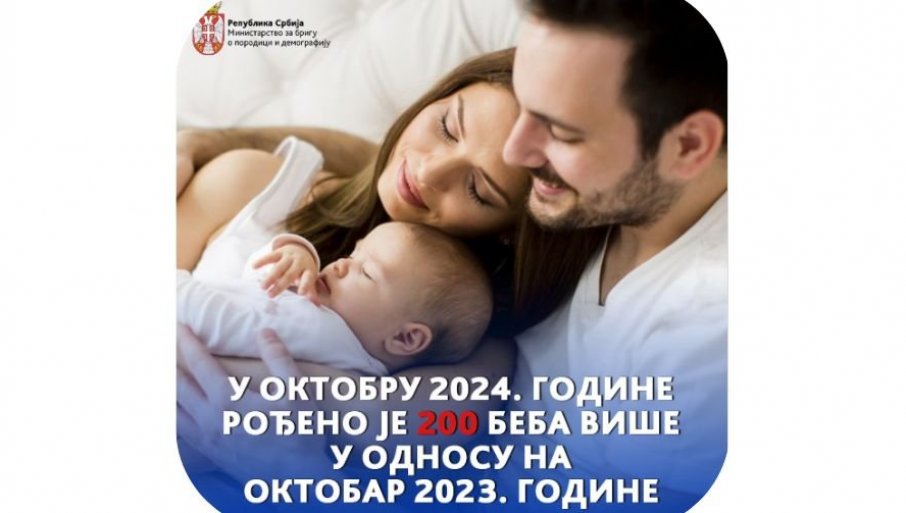 MINISTARKA za brigu o porodici i demografiju, Milica Đurđević Stamenkovski, objavila je na svom zvaničnom Instagram profilu ohrabrujuće podatke o porastu broja novorođenih u Srbiji. Prema njenoj objavi, u oktobru 2024. godine rođeno je 200 beba više u odnosu na isti mesec 2023. godine.