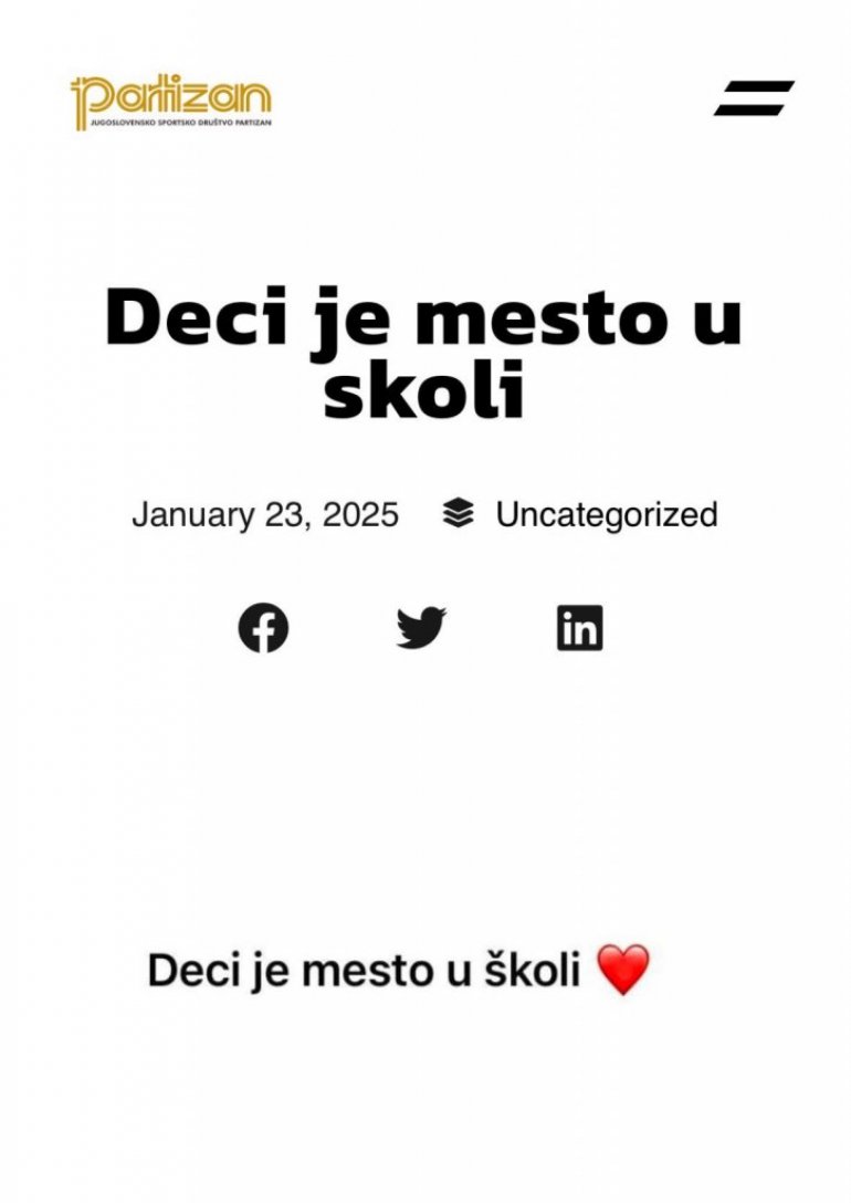 OGLASIO SE PARTIZAN: "Deci je mesto u školi"