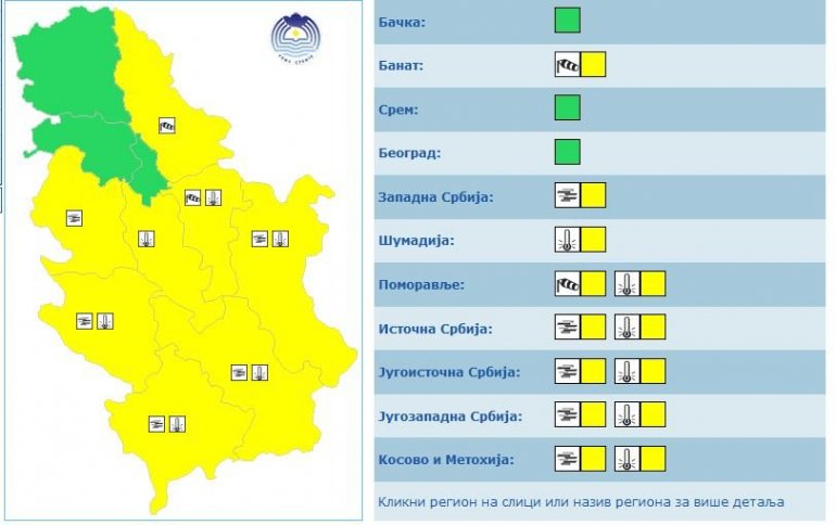 Kako je RHMZ upozorio, meteoalarm će biti upaljen zbog veoma niskih temperatura, magle, i jakog vetra.